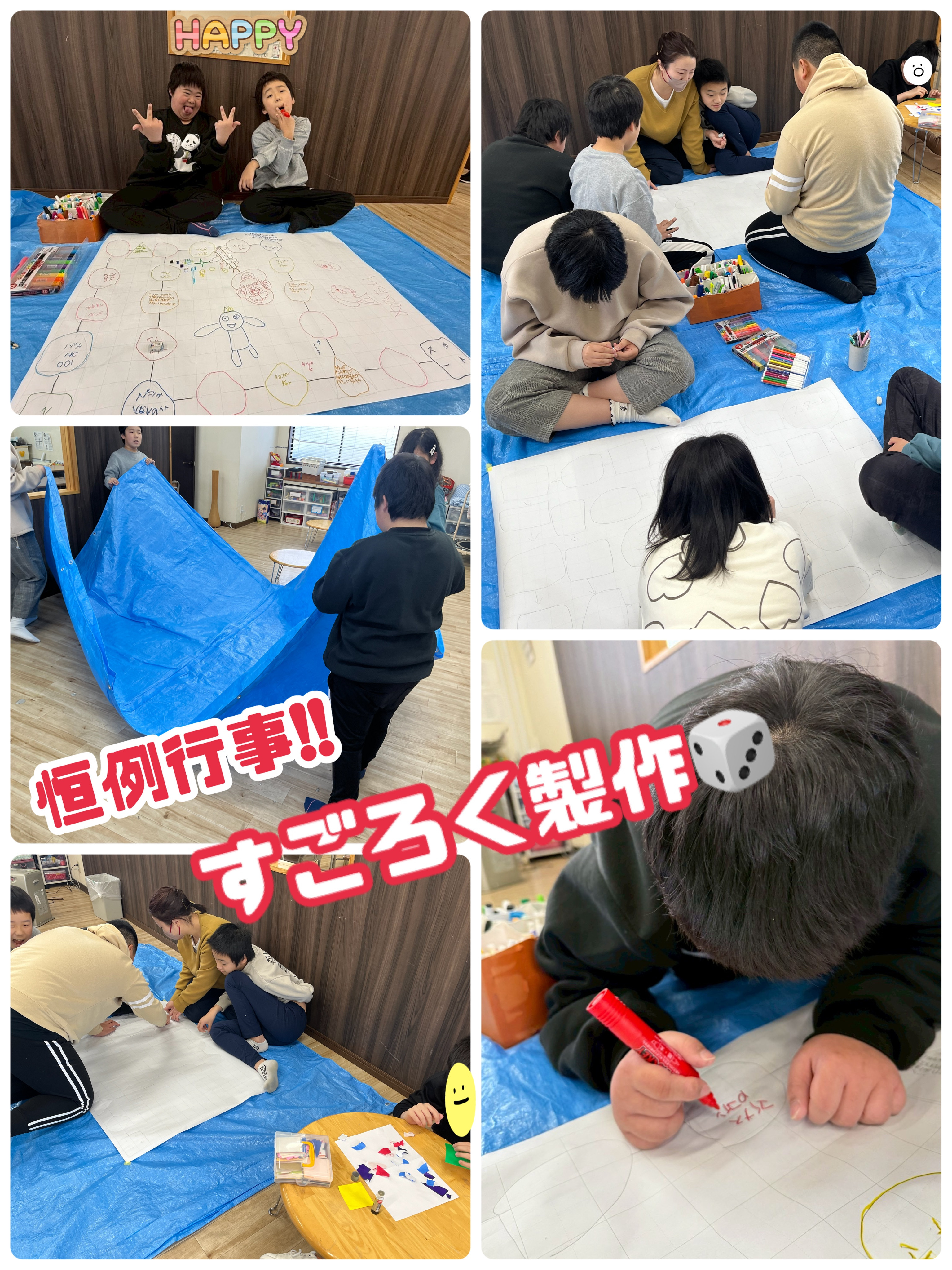昨年末にみんなで協力して製作しておいた、「手作りすごろく🎲」をしました。