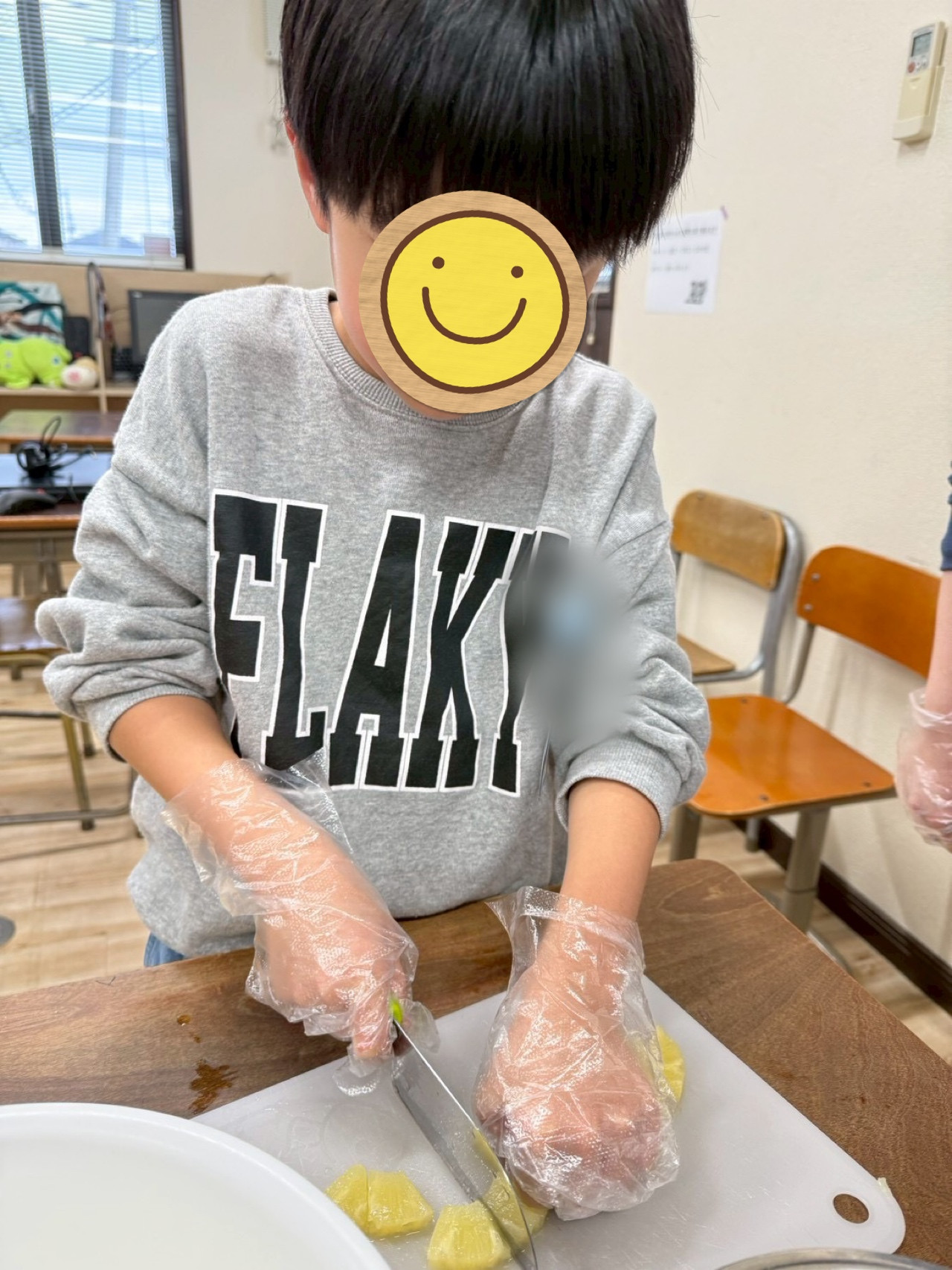 生活スキルの一環として、「包丁を使って果物を切る」ことに挑戦☝️
