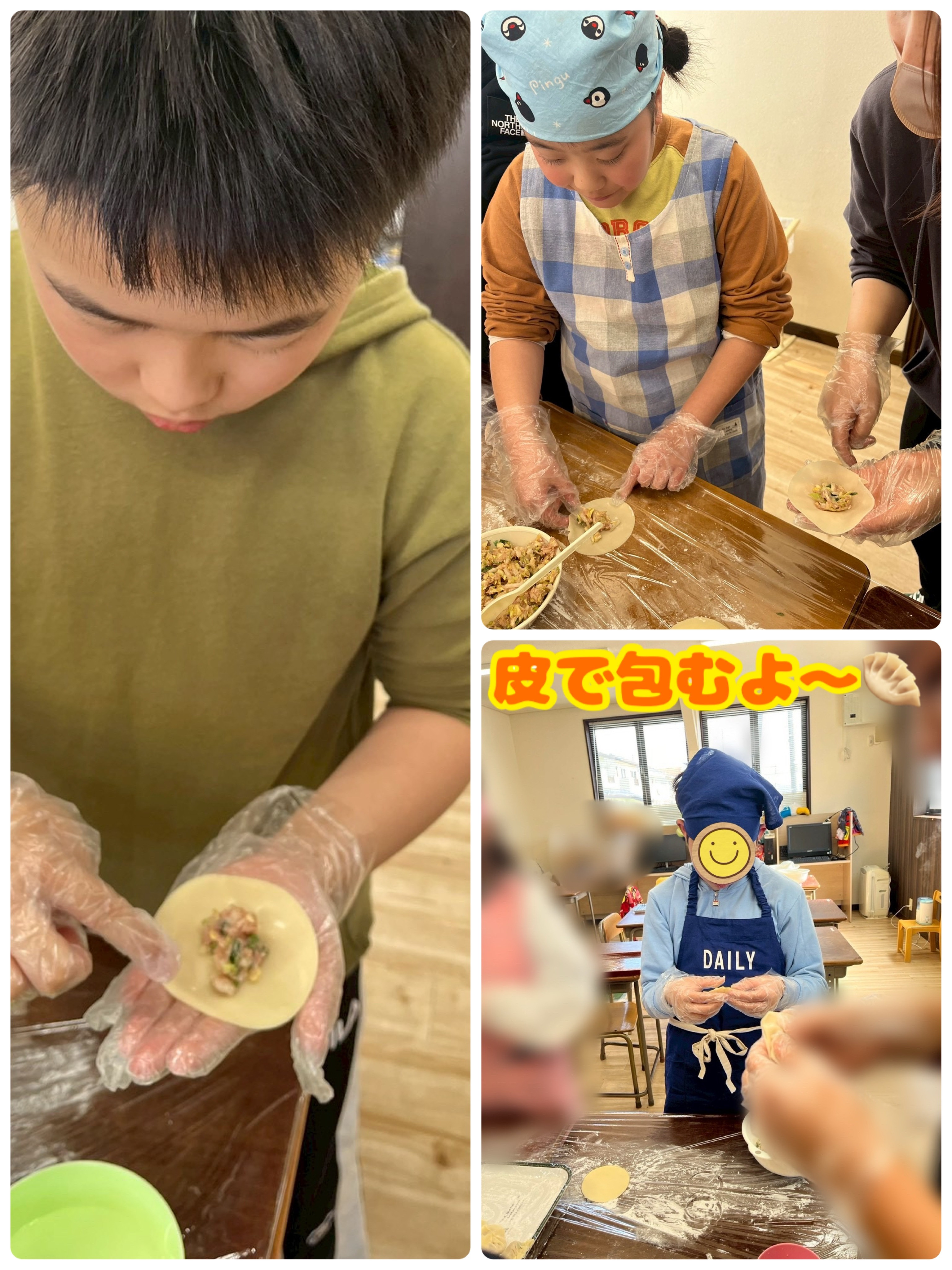 皮で包む作業は、指先を使う細かい作業のため、