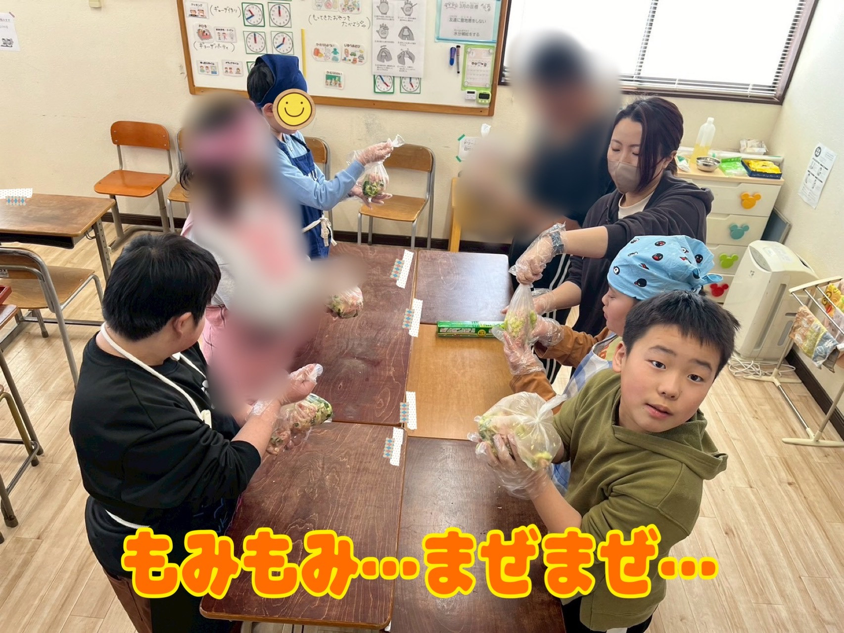 ポリ袋に材料を入れて調理開始!各自で混ぜてから、皮で包みました。