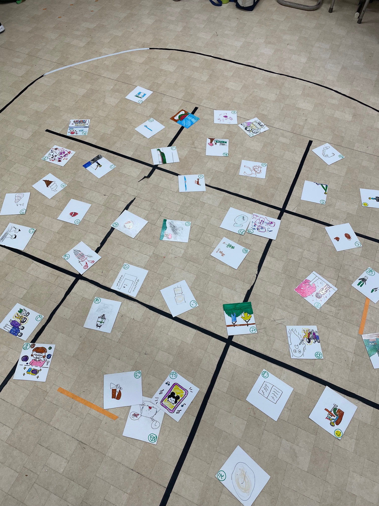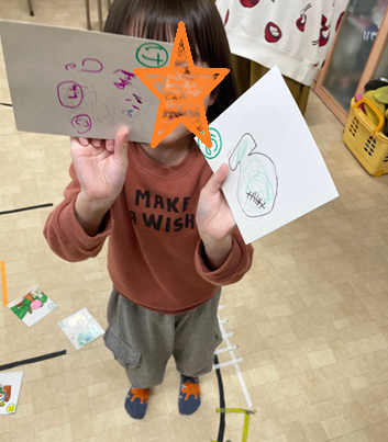 自分が描いたイラストのカルタをGETして嬉しそうなT君♡