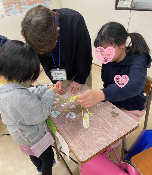 黙々と編み進めていくと、「先生、助けて!ここ間違えた!」「ここまでできたよ!」